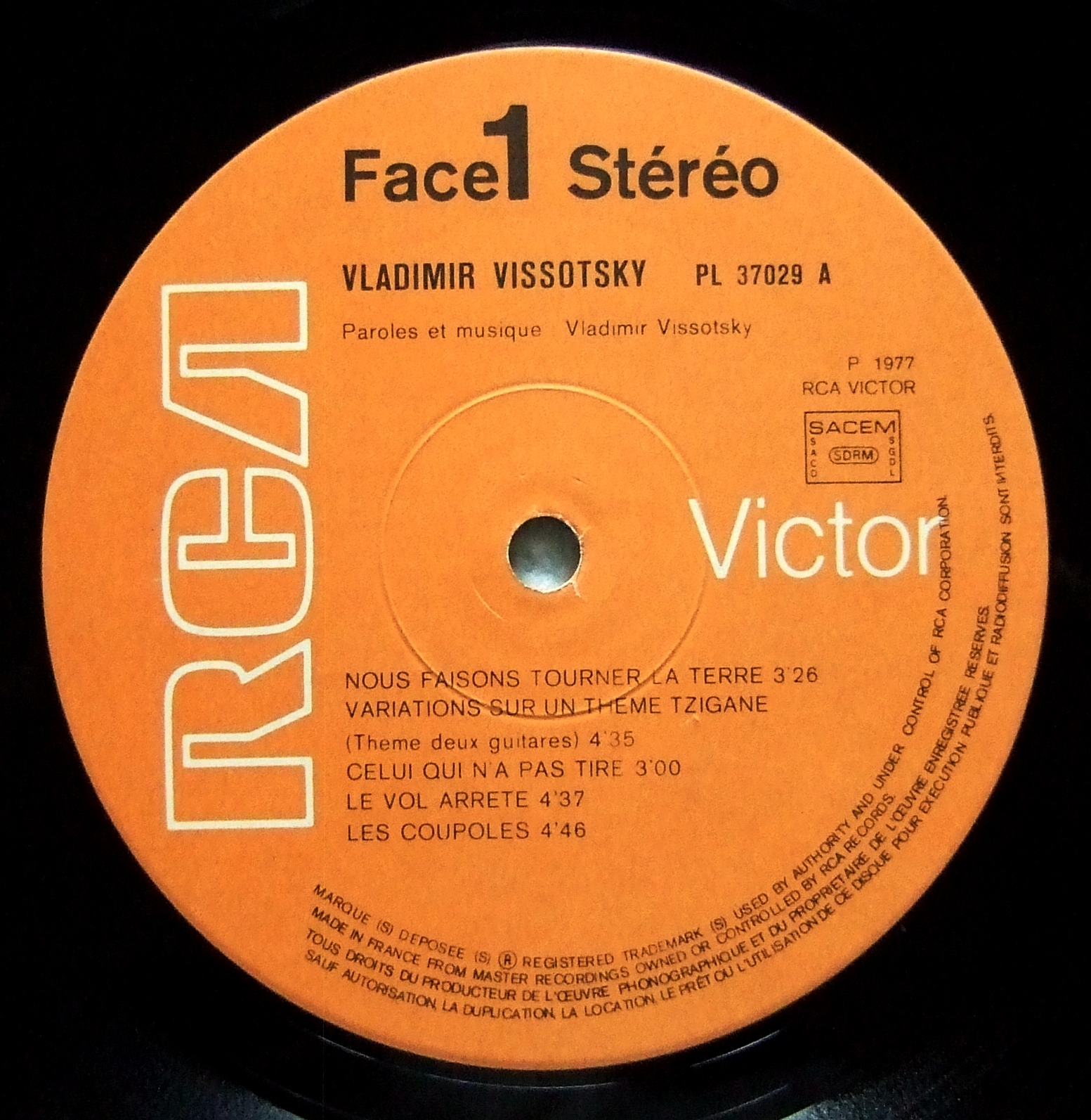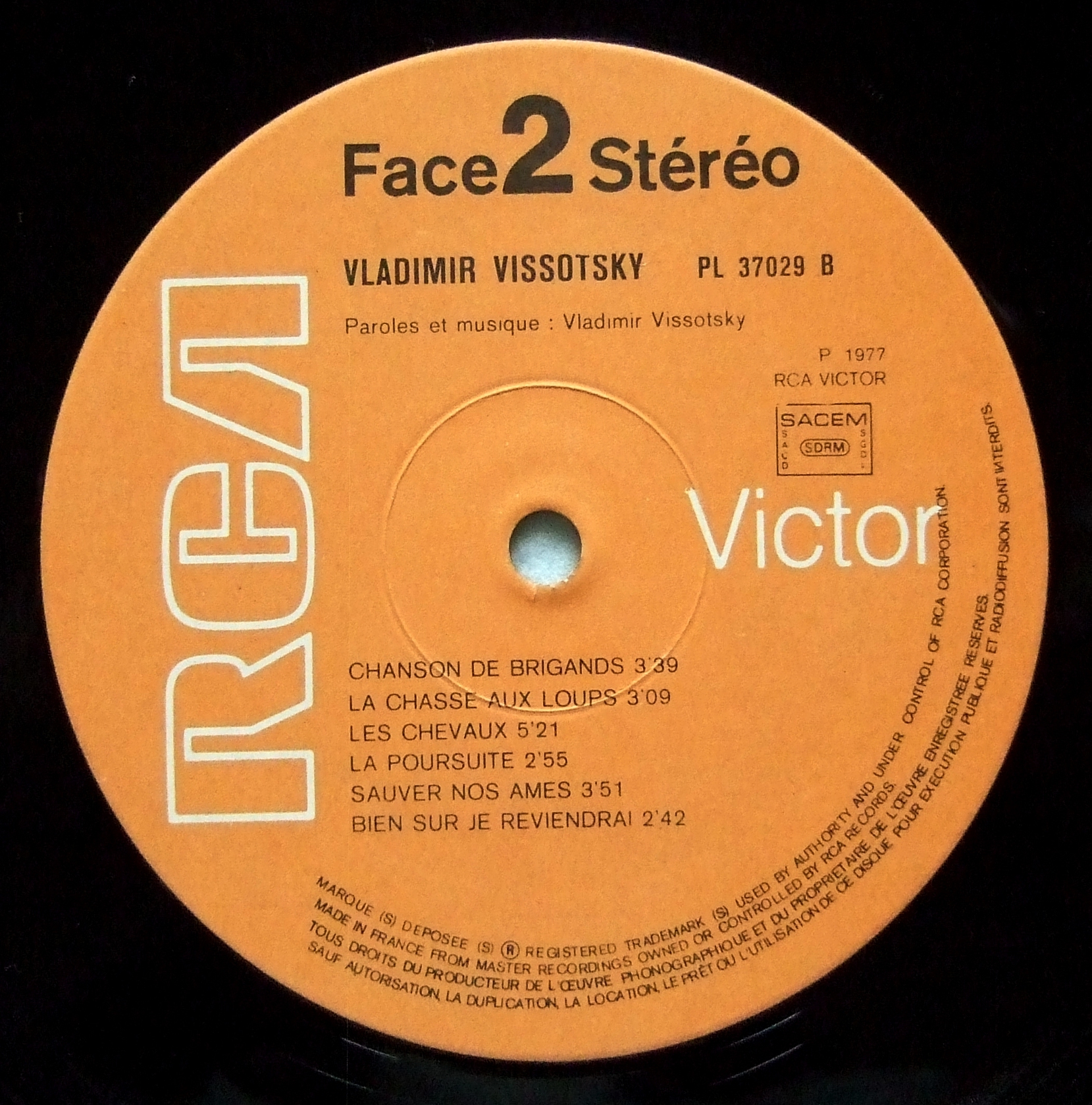 Вторая пластинка Владимира Высоцкого выпущенная во Франции.