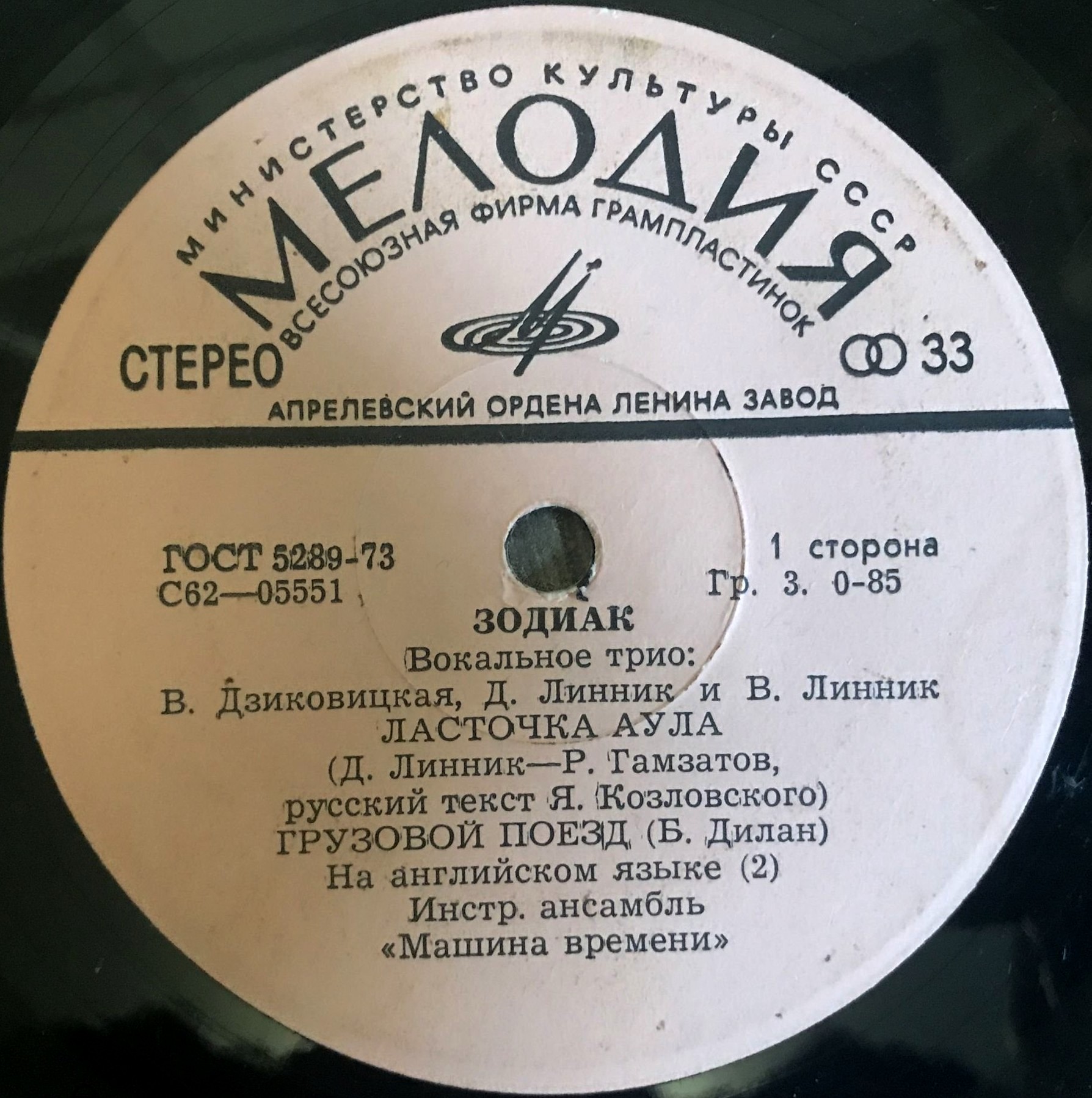 На оборотной стороне конверта пластинки «Вокальное трио «Зодиак», выпущенной фирмой «Мелодия», было указано: «Инструментальный ансамбль «Машина времени».