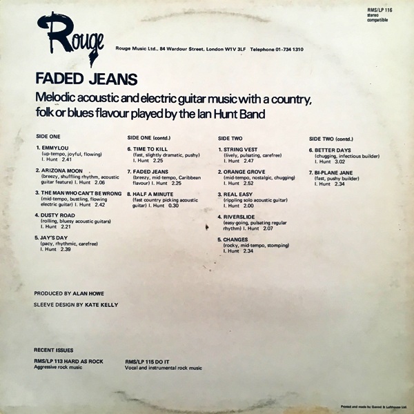 По прошествии пяти-шести лет после выхода «Magic Landscape» Иэн Хант, собрав нескольких, таких же как он сессионщиков, под вывеской Ian Hunt Band, почему-то в Голландии записал по сути свой единственный сольный LP «Faded Jeans» мелодичной музыки для акустической и электрогитары с элементами кантри, фолка и блюза, состоящий аж из 15-ти треков, полностью инструментальный, выпущенный британским лейблом «Rouge», специализирующимся на изданиях так называемой «библиотечной» музыки.