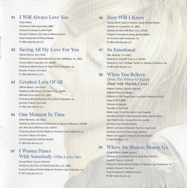 3 Whitney Houston– Greatest Love Of All 4:47