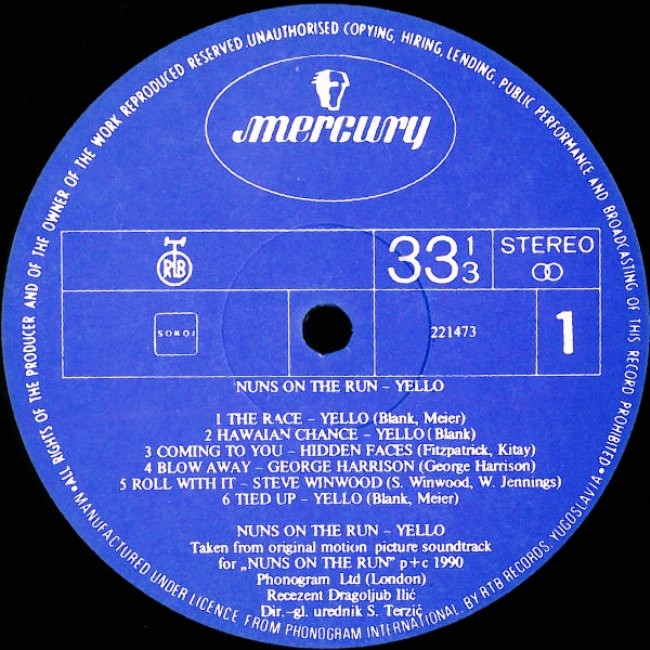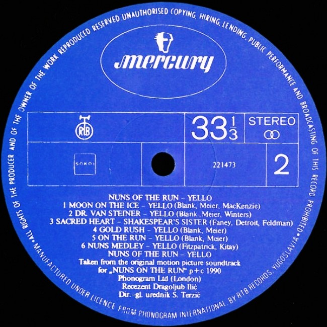 Made under licence from PolyGram Records Inc. by RTB Records, Yugoslavia