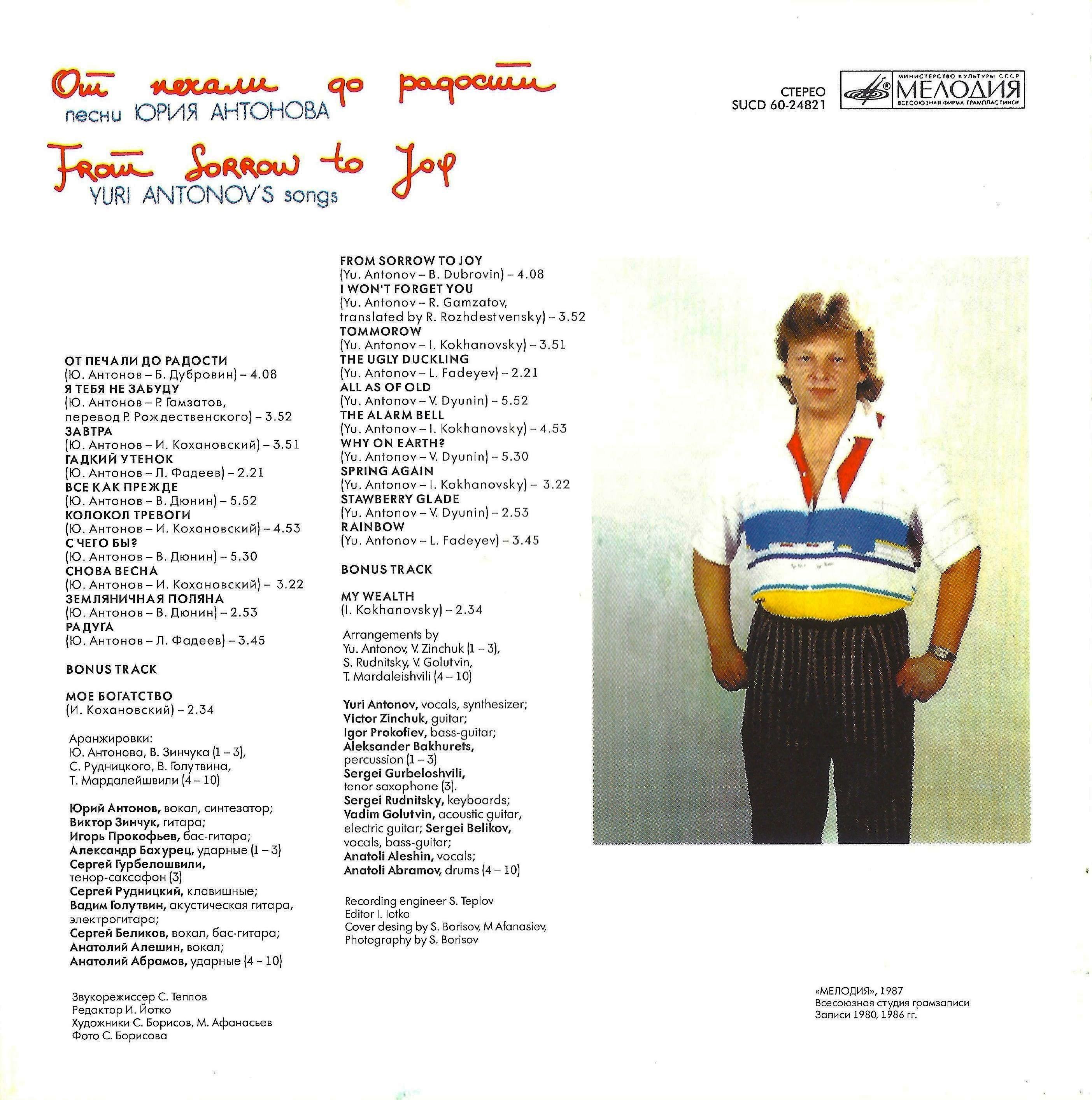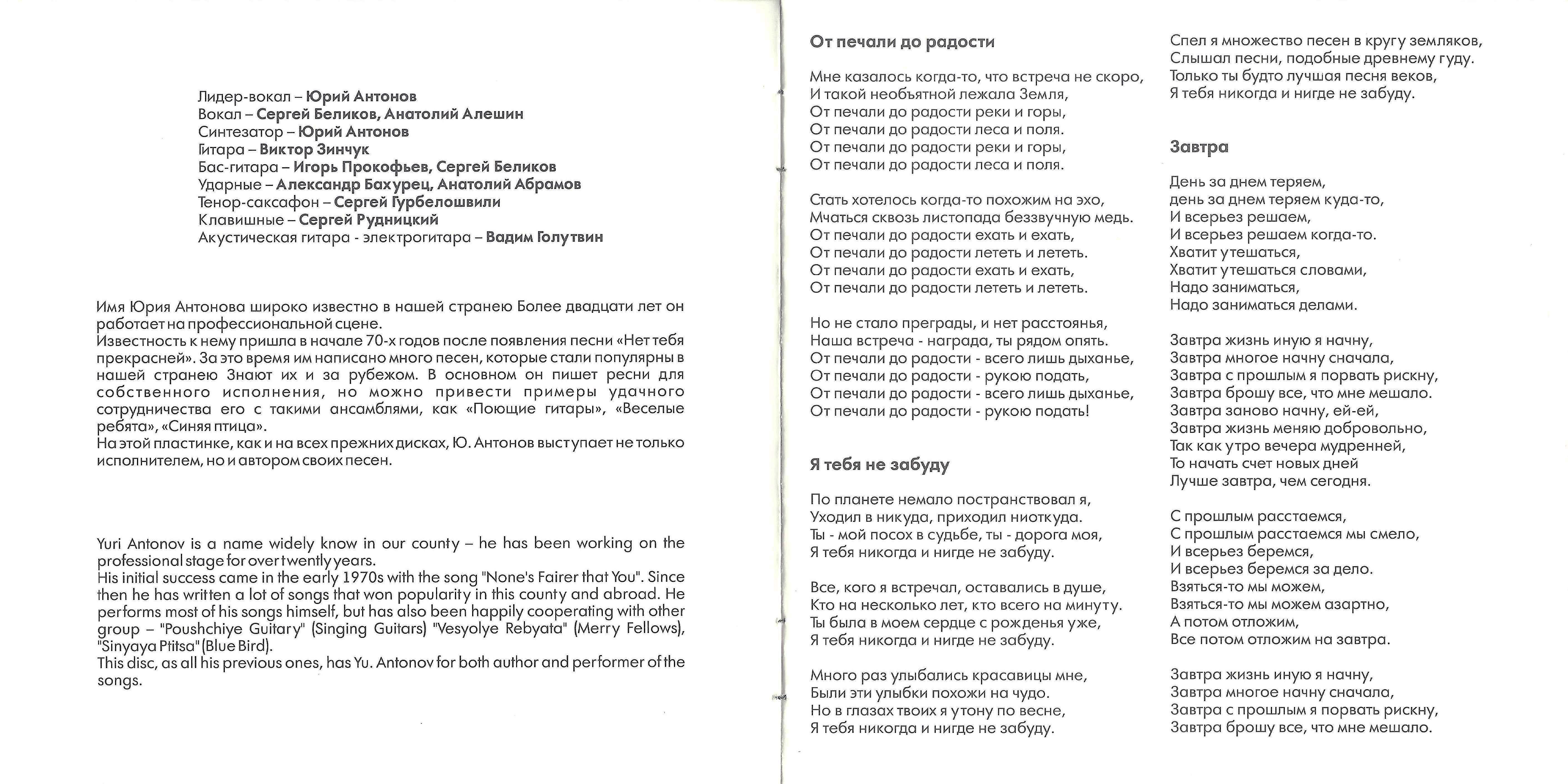 На этой пластинке, как и на всех прежних дисках, Ю.Антонов выступает не только исполнителем, но и автором своих песен.