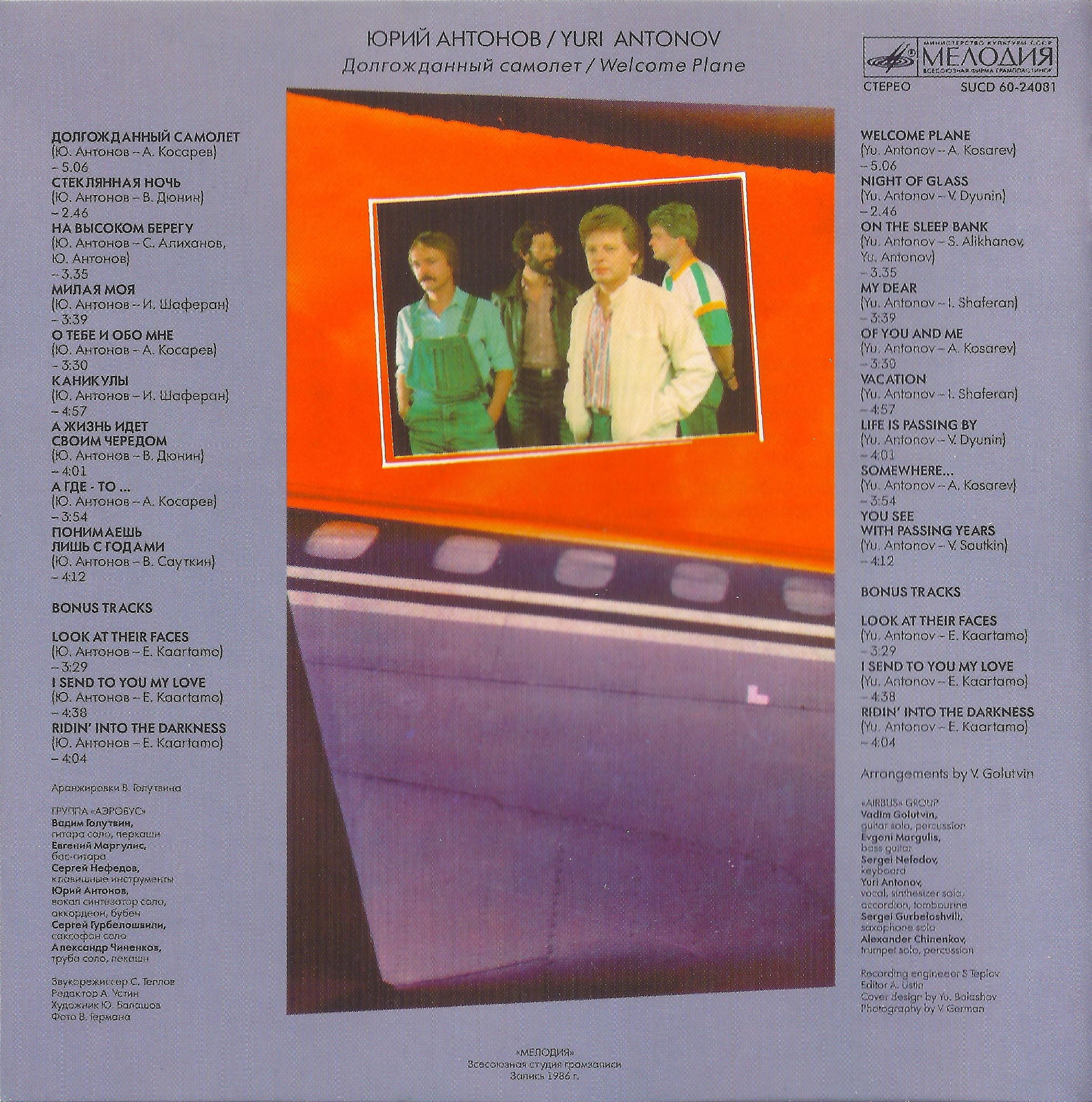 Добавлю свою лепту в перечень альбомов мастера. Третий полноценный (выпущенный Мелодией) альбом Антонова. В записи диска принимала участие группа "Аэробус", созданная Антоновым. В 1986 этот диск вышел на виниле от "Мелодии", а в 1991году этот альбом вышел на CD с трёмя бонусами на английском языке, ранее записанными в Финляндии, и изданными там на миньоне.