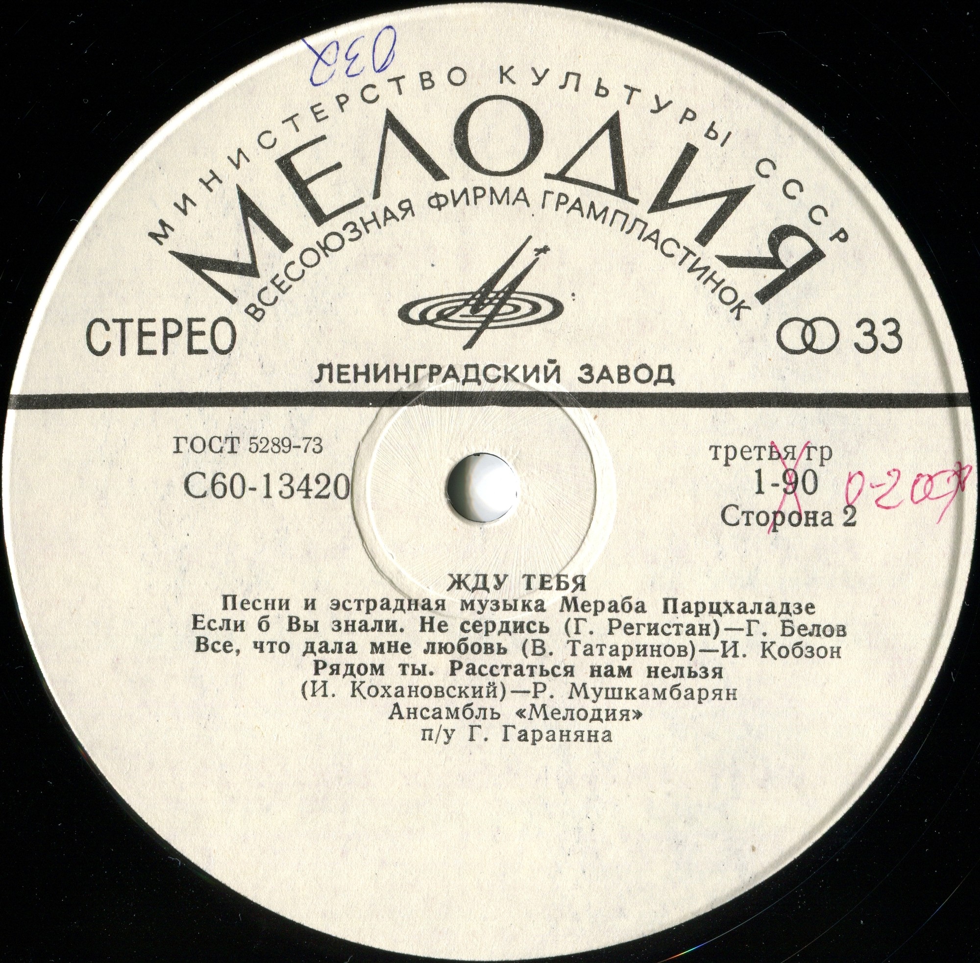 2 СТОРОНА 06.ЕСЛИ Б ВЫ ЗНАЛИ (М.Парцхаладзе) 07.НЕ СЕРДИСЬ (М.Парцхаладзе-Г.Регистан) Г. БЕЛОВ 08.ВСЁ, ЧТО ДАЛА МНЕ ЛЮБОВЬ (М.Парцхаладзе-В.Татаринов) И. КОБЗОН 09.РЯДОМ ТЫ (М.Парцхаладзе) 10.РАССТАТЬСЯ НАМ НЕЛЬЗЯ (М.Парцхаладзе-И.Кохановский) Р. МУШКАМБАРЯН
