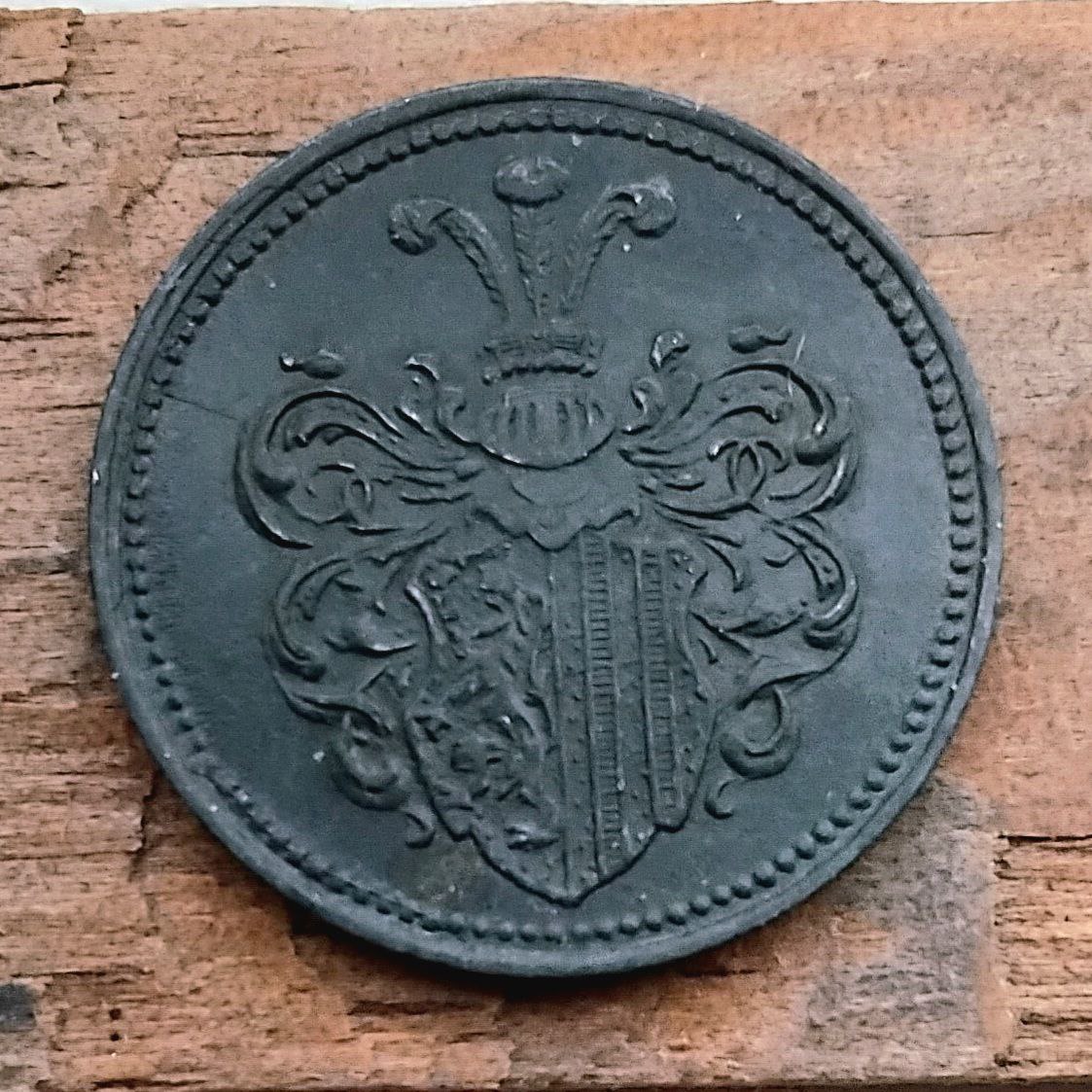 Жетон на 20 пфеннигов для трамвая (Strassenbahn) Лейпцига — относится к нотгельдам (чрезвычайные деньги), который использовался для оплаты проезда в городском транспорте, в период Первой мировой войны, когда немецкая марка стремительно дешевела.