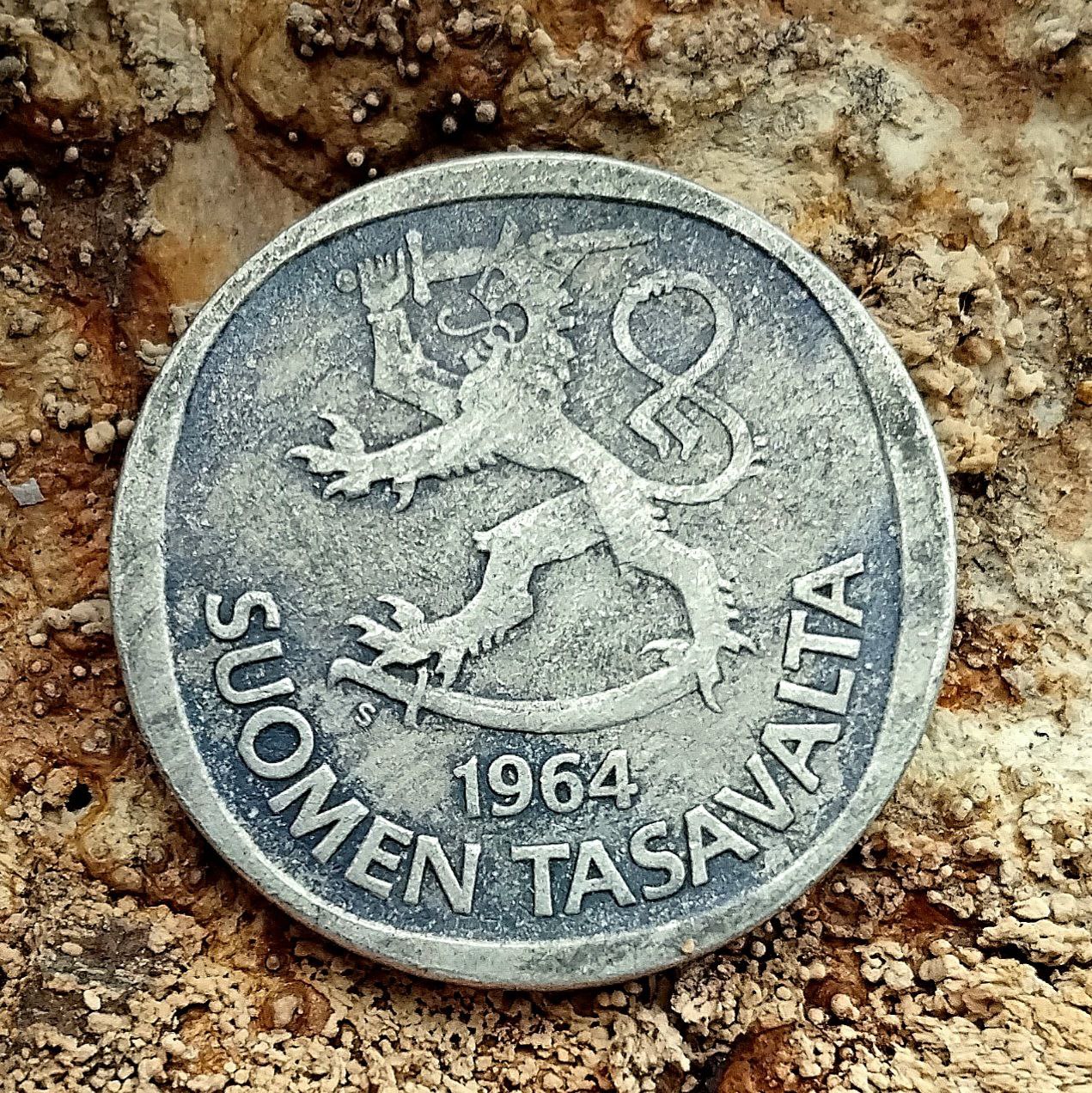 Финская монета из низкопробного серебра (350 проба) выпускалась в период с 1964 по 1968 гг. В 1964 году тираж составил 9999000 экземпляров. Вес (g) - 6,4 Диаметр (mm) - 24 Толщина (mm...