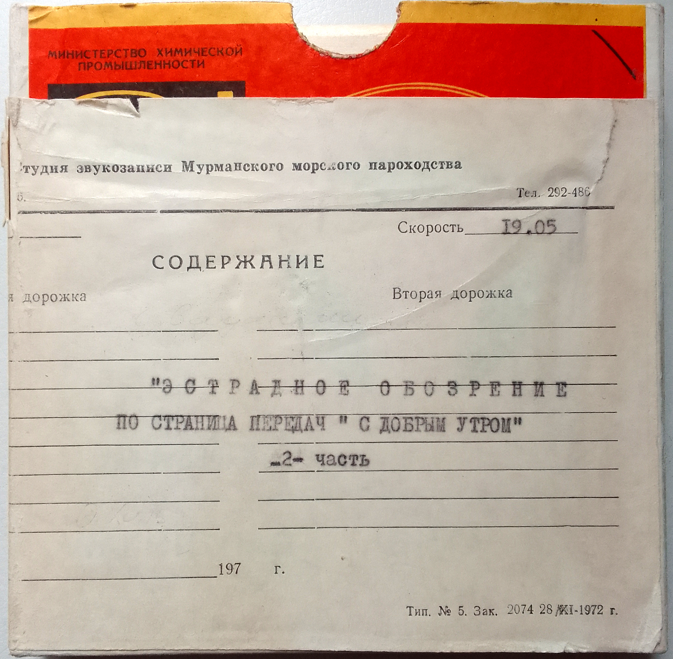 Эстрадное Обозрение. По страницам передач "С Добрым Утром". Студия звукозаписи Мурманского морского пароходства. г. Мурманск. 1973 год.