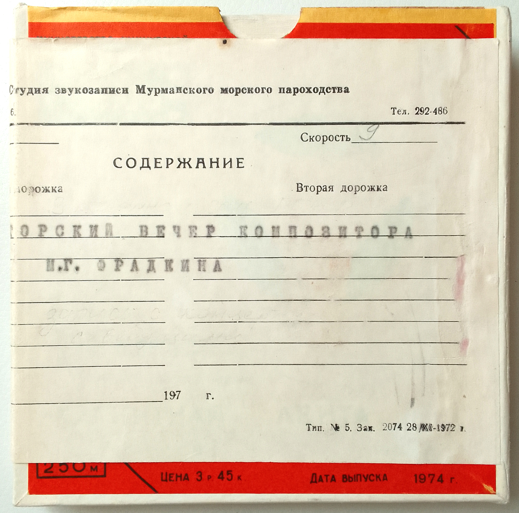 Магнитофильм "Авторский вечер композитора М.Г. Фрадкина"